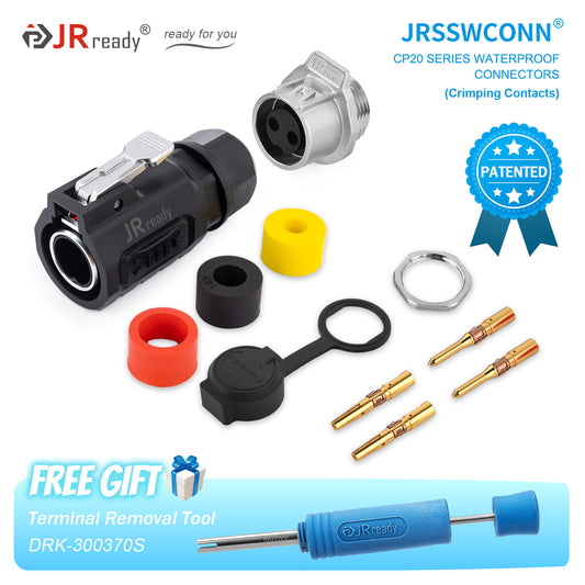 JRready JRSSW CP20 Series 1-Mounting Hole 2-Pin / 3-Pin / 4 Pin Crimping Type Metal / Plastic Plug & Socket Waterproof Connectors