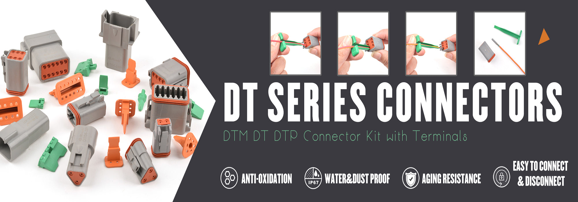 JRready ST6293 Deutsch DTM Connector Kit 2 3 4 6 8 and 12 Pin Automotive Electrical Connectors with Size 20 Solid Contacts Crimp Wire Gauge 16-22AWG,7.5A