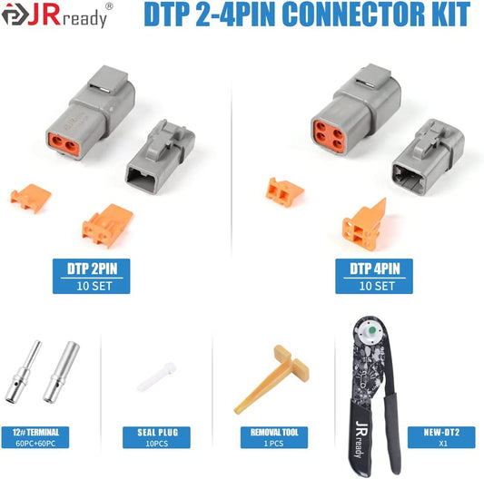 JRready ST6336 202pcs Deutsch DTP Connector Kit: 2 Pin 4 Pin IP67 Waterproof Connectors,With Size 12 Solid Contacts & NEW-DT2 Deutsch Crimper