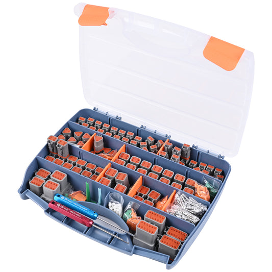 JRready 604PCS DT Deutsch Connector Kit, 2 3 4 6 8 12 Pin Gray DT Connectors, Size 16 Stamped Formed Contacts(14-18AWG)/ DT Connector Removal Tool, ST6315 Deutsch pin Connector kit.
