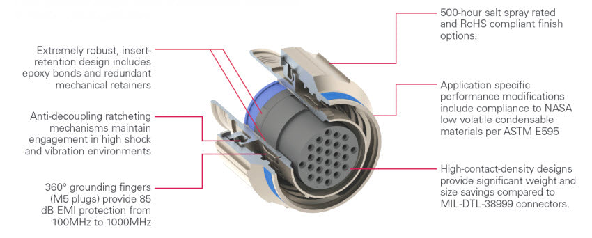 Extreme temperatures — If connectors are not rated for extremely high or low temperatures, they will eventually fail. If not rated for high temperatures, the insulation fails and conductivity will also spike. If operated at continued high temperatures, these spikes will add to the temperature elevation, which can cause corrosion and eventually, reduced contact force. This can impact the electrical signal traveling through the connector and cable assembly, which in turn can create an open circuit.
