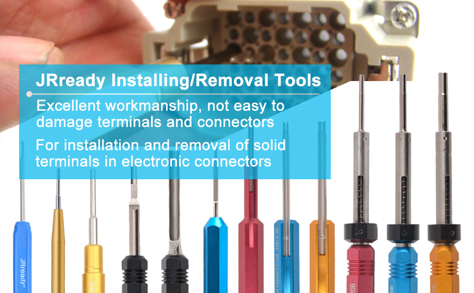 JRready ST5142 M81969 Aus- und Einbauwerkzeugsatz: DRK12B, DRK16B, DRK20B Ausziehwerkzeug und DAK12B, DAK16B, DAK20B Einsetzwerkzeug für MIL-C-81969-Serie und einige runde Kontakte außerhalb der MIL-Norm.