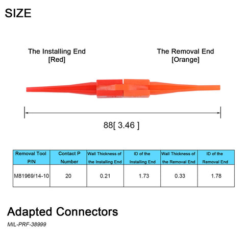 • Contact Size:Installs and Removes Size 20 Pin/Socket Contacts