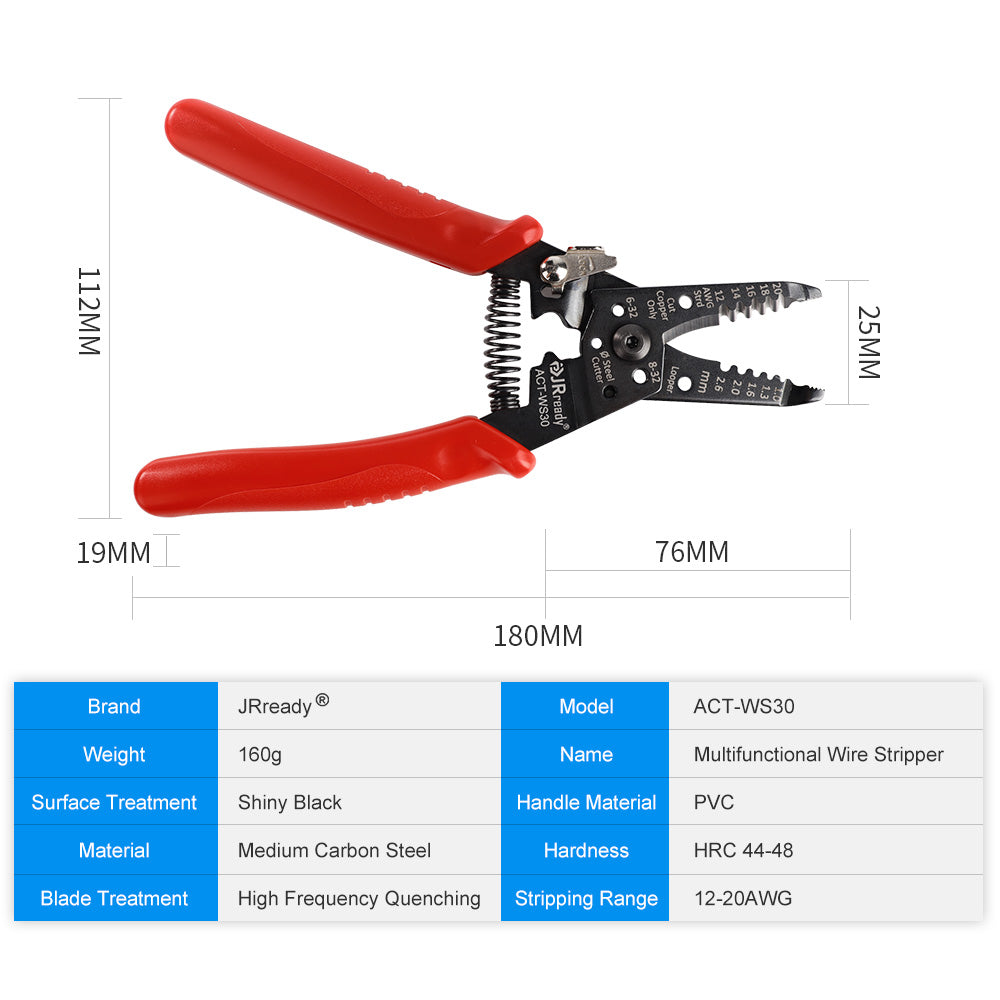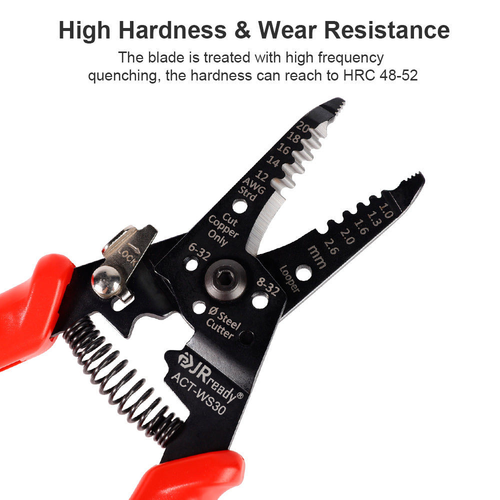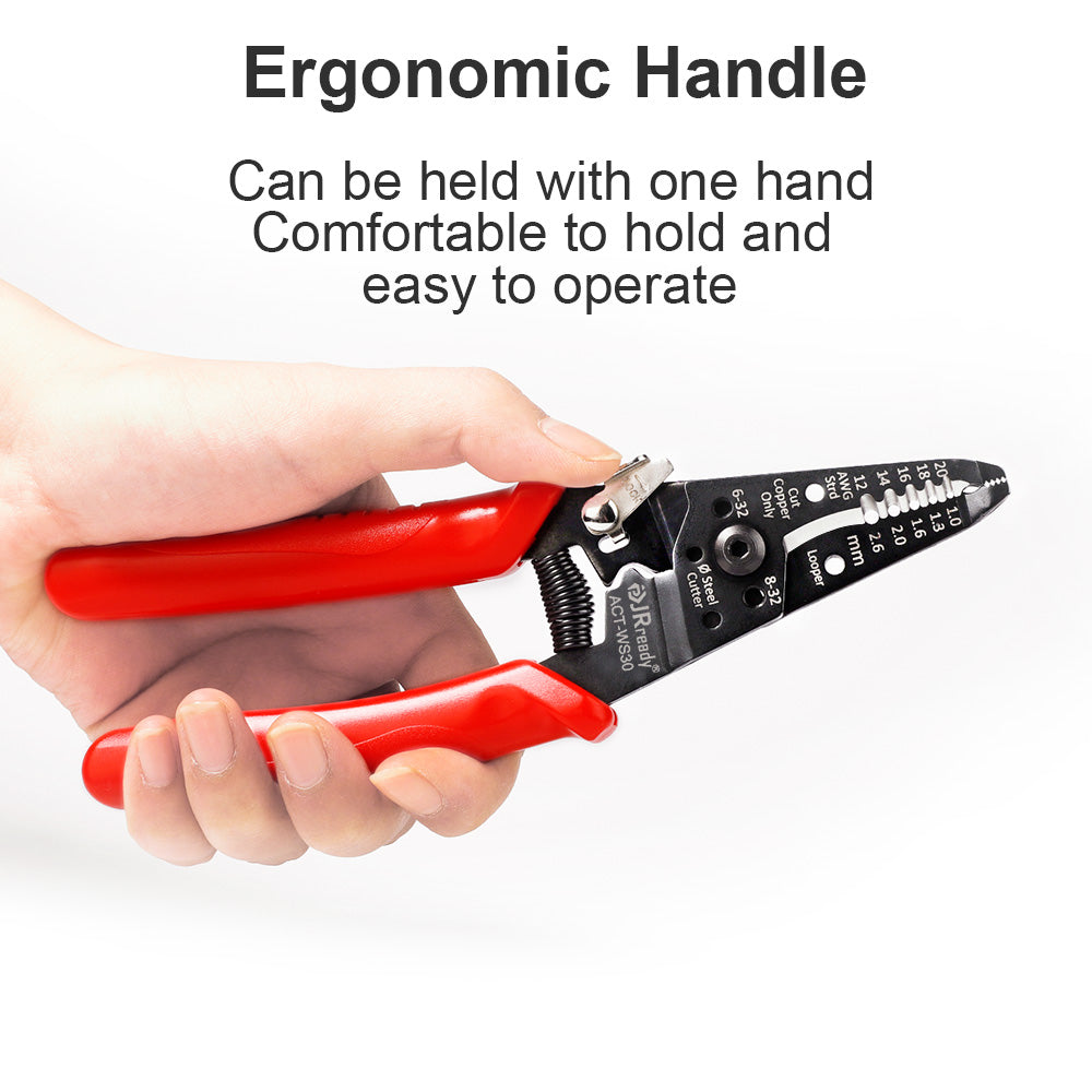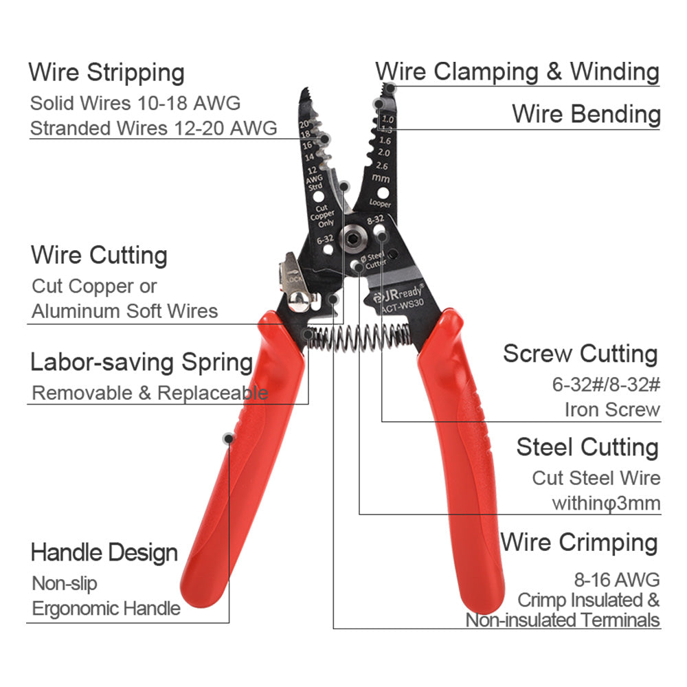 JRready ACT-WS30 Multifunctional Precision Wire Stripper Crimper Cutter, Strip Wire Solid 10-18 AWG, Stranded 12-20 AWG,Crimp 8-16 AWG Terminal, Cut Steel Wire