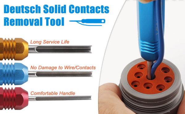 Wide Application: Remove the contacts from different connectors, applicable to DT DTP DTM Series,DRC,AEC,DTV,DRB ,HD10,HD20,HD30,HD Series,STRIKE,JIFFY SPLICE series connectors.
