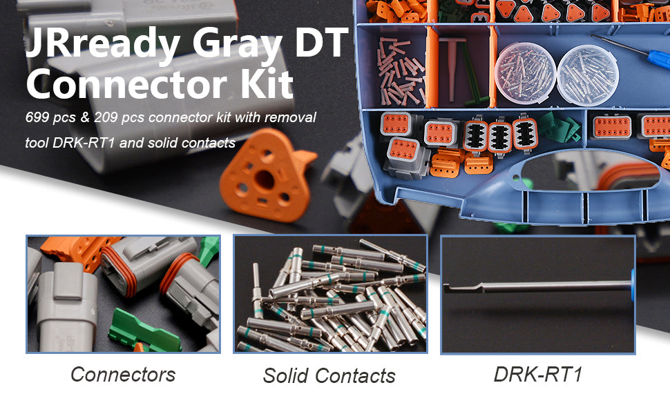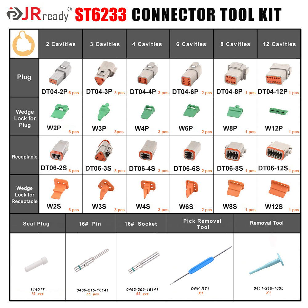 - Includes 209pcs DT Series 2 3 4 6 8 12 pin electrical connector components