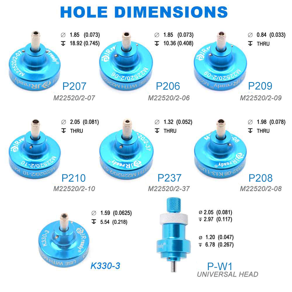 JRready ST5114-1 Positioner Kit: 7 Positioners & P-W1 Universal Positioner for M22520/2-01 Crimp Tool