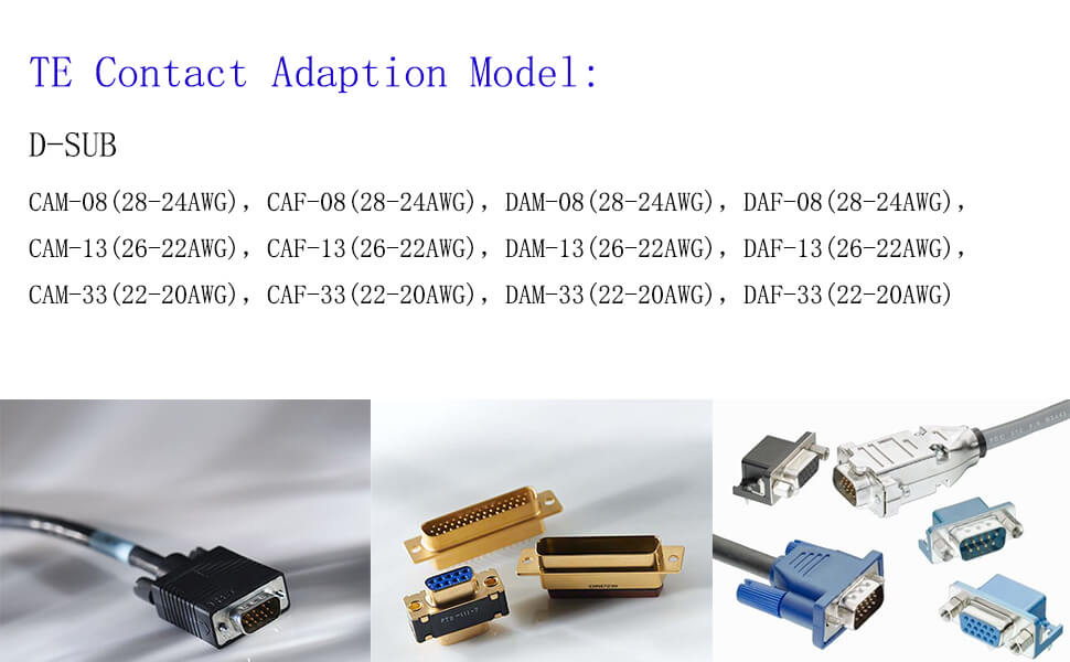 - The kit suitable for HARTING(HAN D-SUB)、TE(D-SUB)、WAIN(HM、D-SUB、HR23) series connectors