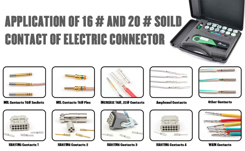 - Crimp : The YJQ-W7A/M22520/7-01 accepts the entire middle wire range of 16 through 28 AWG to removable contacts used in